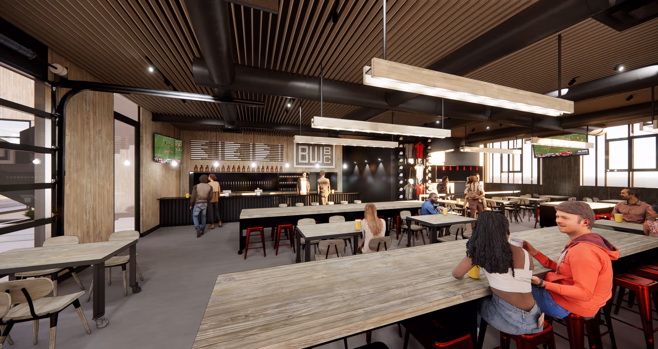 The design embraces the industrial legacy of the neighborhood while signaling its evolution. Strong, contemporary forms highlight the varied uses within, while material choices and massing break down the scale and create a striking identity for the corner. As one of the first new buildings in the area in years, Brick West Garden City sets a precedent for density and mixed-use vitality — positioning the brewery as both anchor and catalyst for the district’s next chapter.