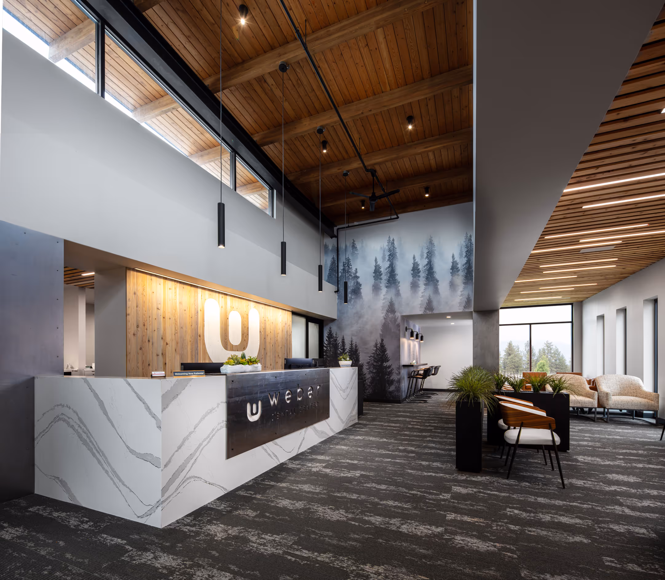 Weber Dental Center was envisioned as both a place of care and a landmark — a building that could serve as a “sign” along Spokane’s I-90 corridor while remaining quiet and respectful of its natural backdrop. The design strikes a balance between visibility and humility: a timeless form that reveals its structure and celebrates natural materials without overwhelming the horizon.