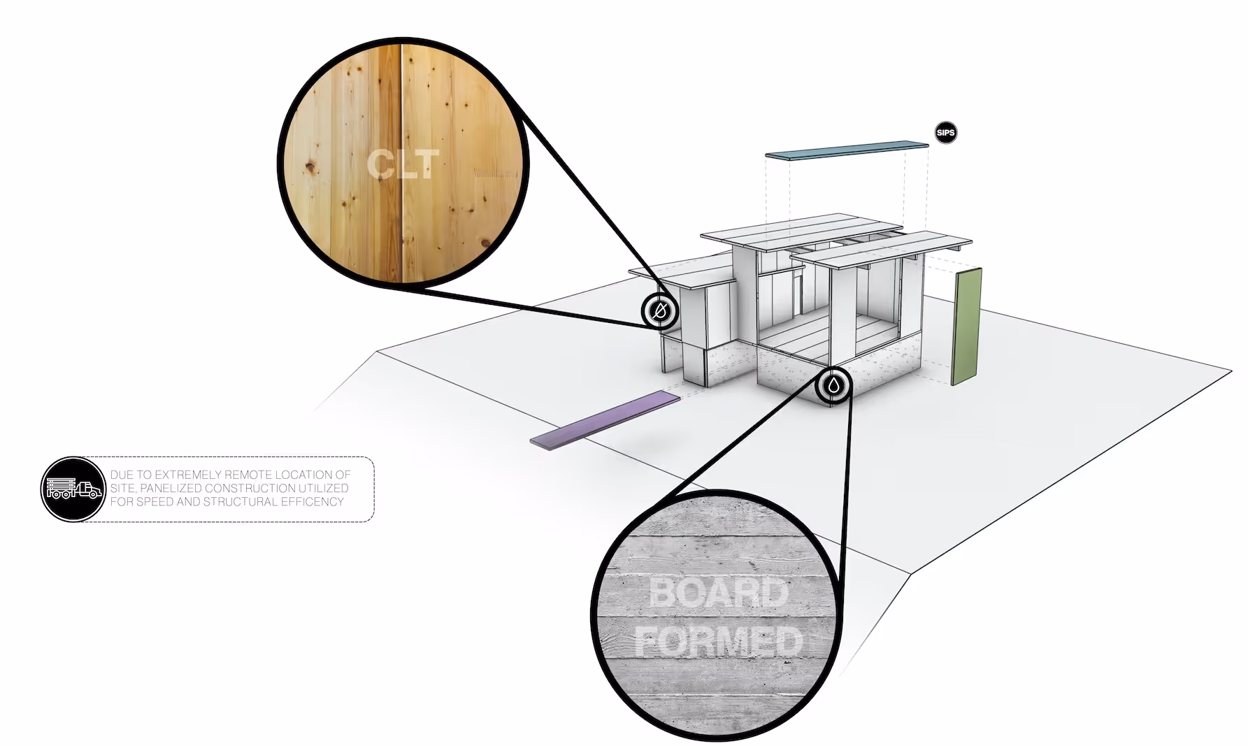 Given the site’s isolation and condensed construction schedule, the design team turned to cross-laminated timber. The prefabricated system allowed for efficient assembly while providing a warm, durable interior suited to the rhythms of family life. The result is a cabin both resilient and inviting — rooted in place, open to the landscape, and ready for generations to come.