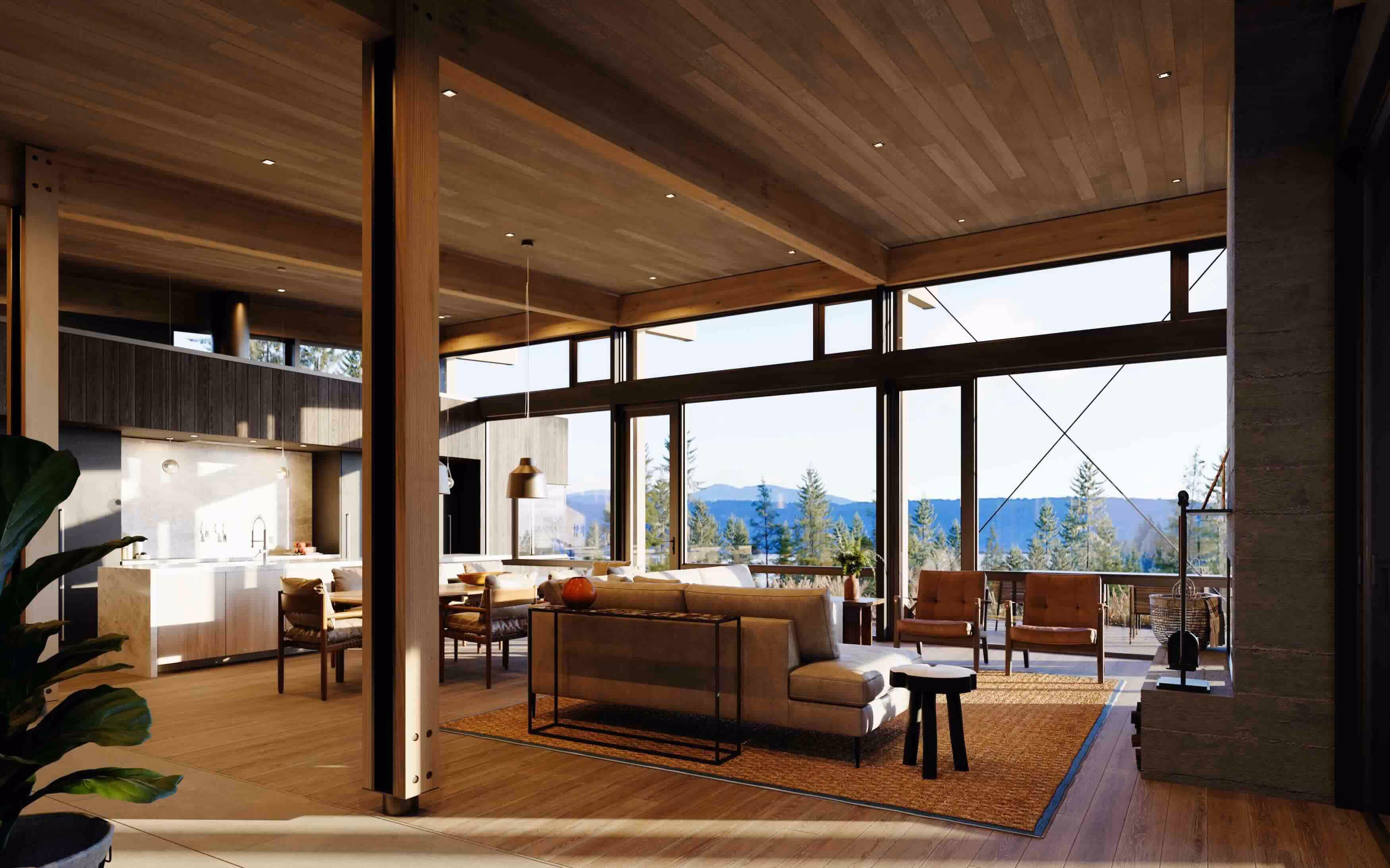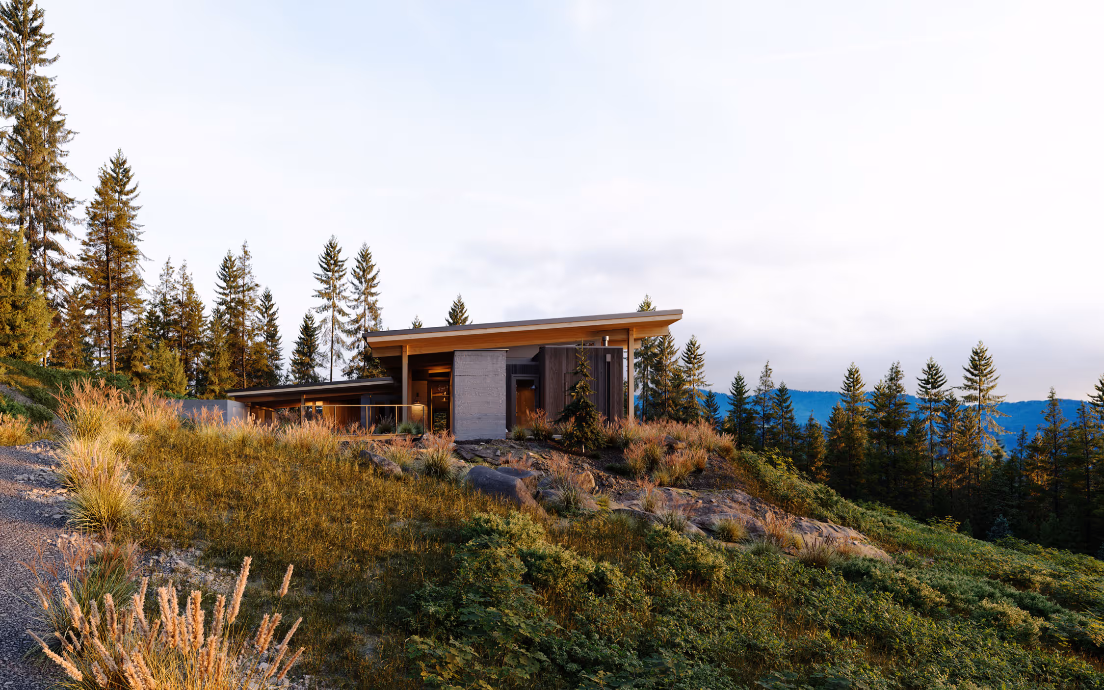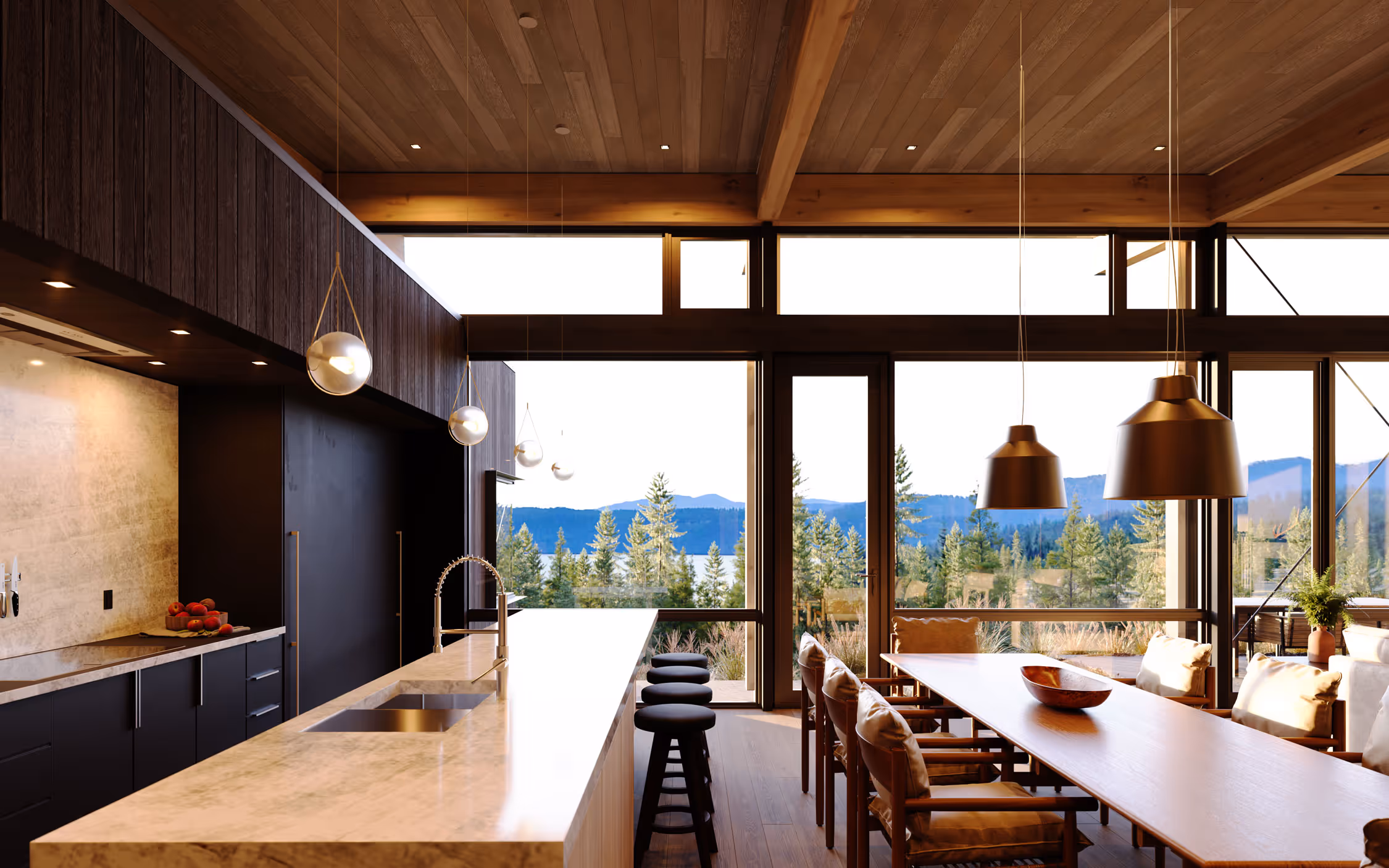 Perched above the quiet waters of RockfordBay on Lake Coeur d’Alene, this home draws directly from the character of its site. Inspired by the owner’s passion for the network of trails weaving through the property, the design organizes itself around a central path that threads through the house. Along this axis, forest views unfold to one side while sweeping lake vistas open to the other.