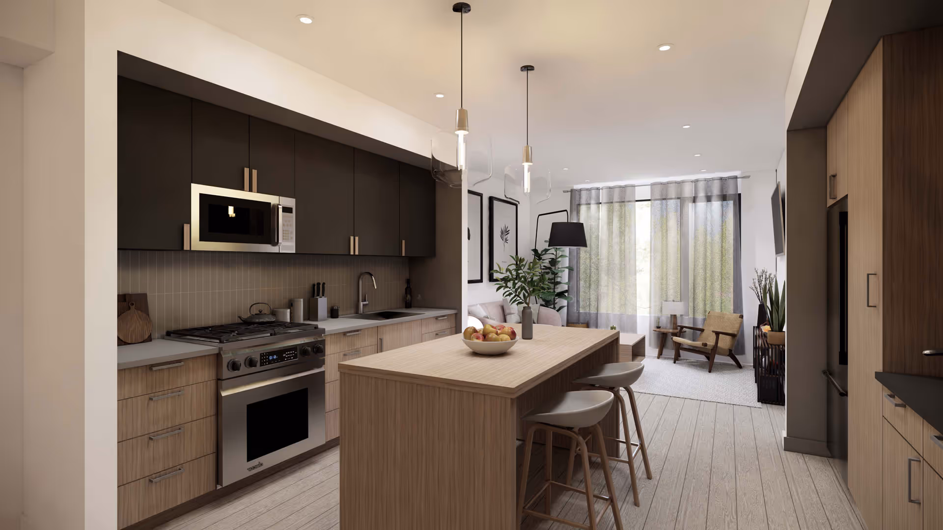Rather than a single large mass, the project breaks down into smaller building forms, arranged delicately across the site. A unifying roofline ties the structures together, while varied footprints and shifting orientations mirror the scattered pattern of the valley’s boulders. The result is multifamily housing that feels cohesive yet sensitive to its historic, small-scale surroundings.